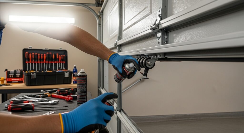 One of the most important steps in garage door upkeep is proper garage door lubrication. Over time, friction increases between moving components, leading to noise, vibration, and premature wear. Applying garage door moving parts lubrication to rollers, hinges, and springs supports garage door friction reduction and smoother motion.