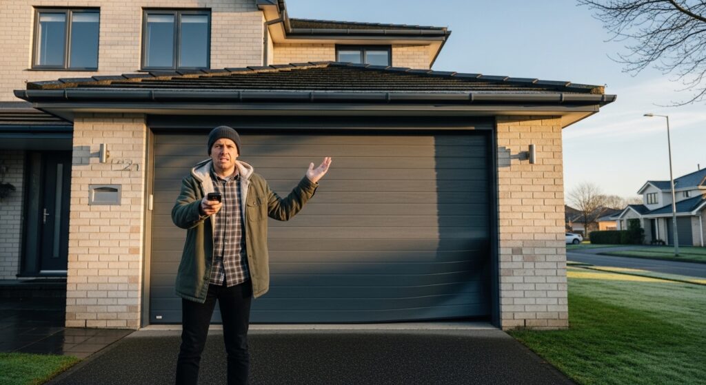 Another common cause is a garage door spring broken condition. Springs carry the weight of the door, and when one fails, the opener cannot lift the door safely. You may also hear unusual noises or notice the garage door stuck halfway, both classic garage door failure symptoms.